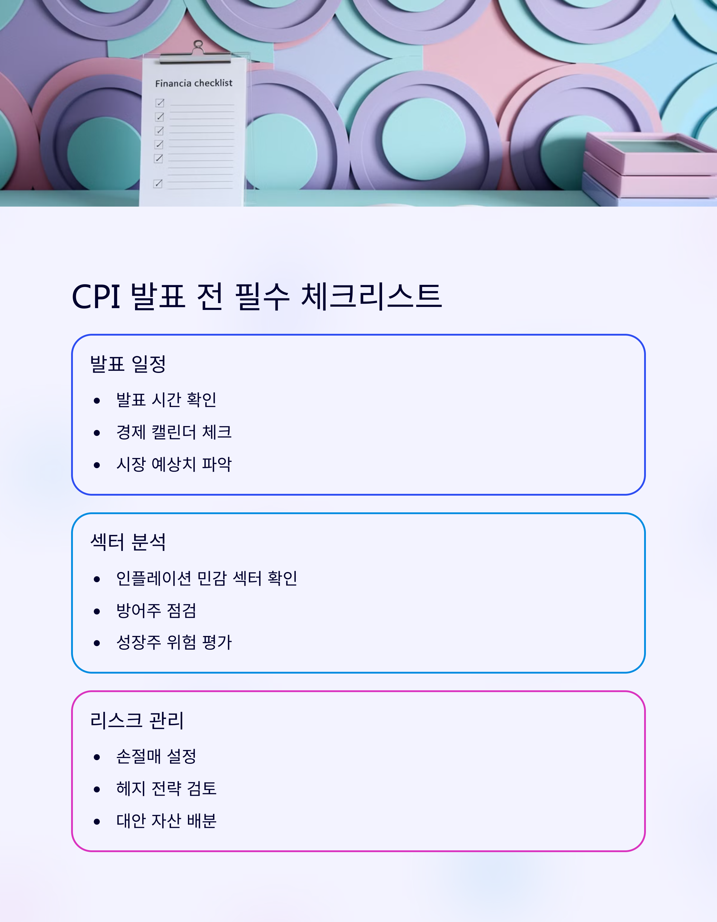 마지막으로 체크해야 할 것은 자신의 투자 목표와 성향입니다. 단기 수익을 노리는 투자자라면 CPI 발표 전 단기 포지션 정리 혹은 양방향 전략이 필요할 수 있습니다. 반면 장기 투자자라면 오히려 이러한 시장의 노이즈를 기회로 삼아 매수 타이밍을 잡는 것이 현명합니다. 무조건적인 공포나 기대에 휩쓸리기보다는 자신만의 기준으로 냉정한 시선을 유지하는 것이 CPI 시점에서 가장 중요한 자세입니다.