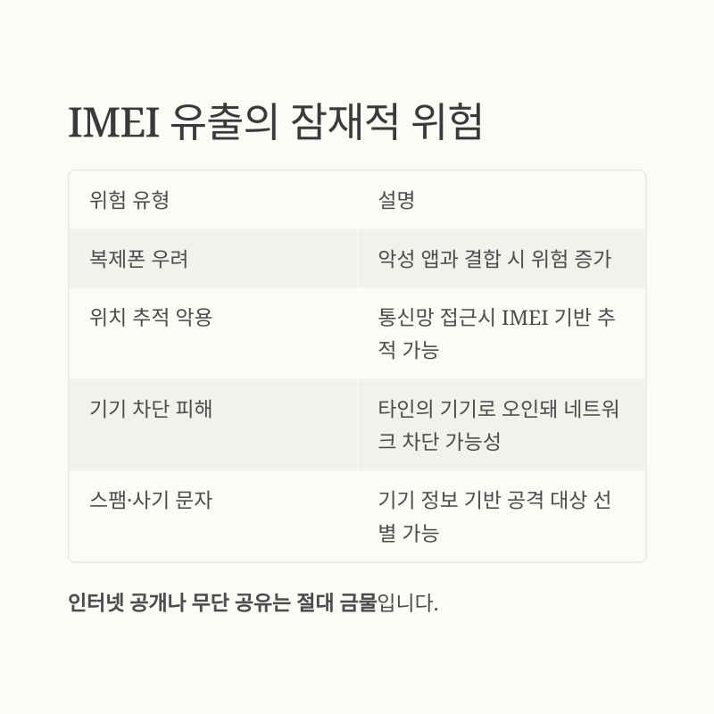 "단순한 번호 하나쯤이야"라고 생각할 수 있지만, IMEI 유출 시 아래와 같은 문제점이 발생할 수 있습니다.
