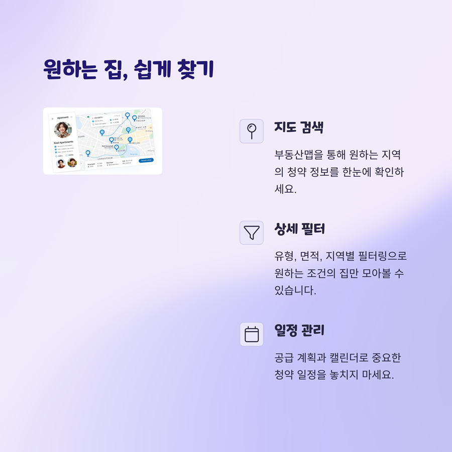"모든 청약 관련 서비스를 한 곳에서" 이용할 수 있어 청약 준비가 훨씬 간편해졌습니다. 🎯