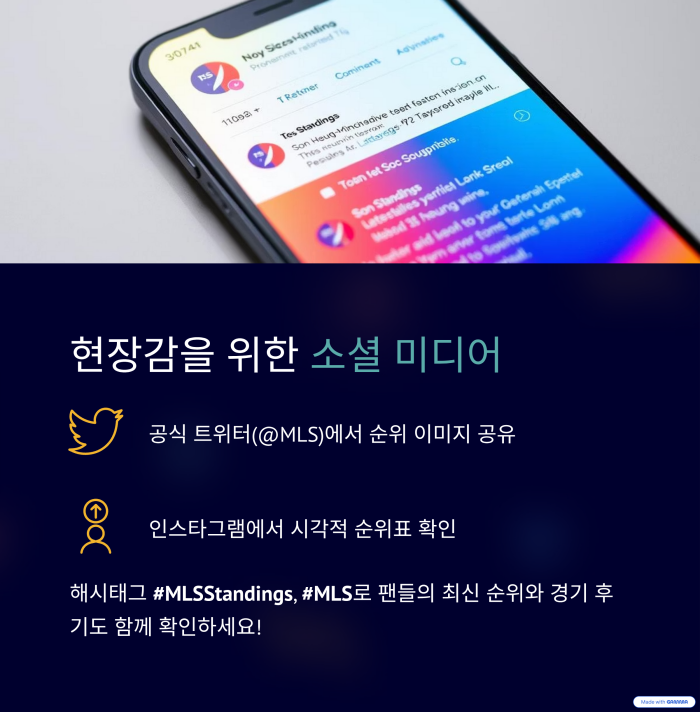 MLS는 공식 트위터(@MLS), 인스타그램, 페이스북을 통해 순위 이미지를 시각적으로 공유합니다.