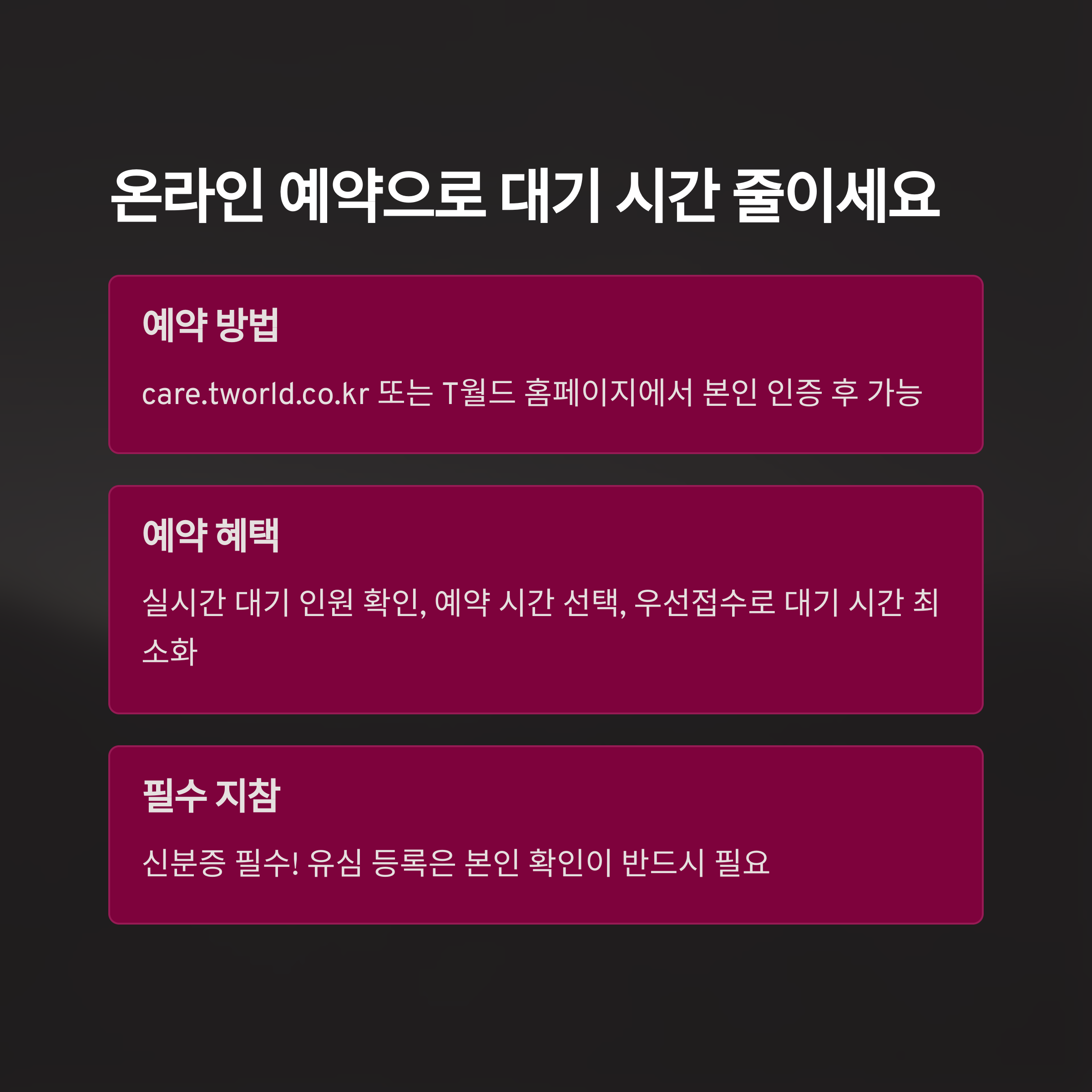 "온라인 예약은 SKT 공식 사이트인 care.tworld.co.kr 또는