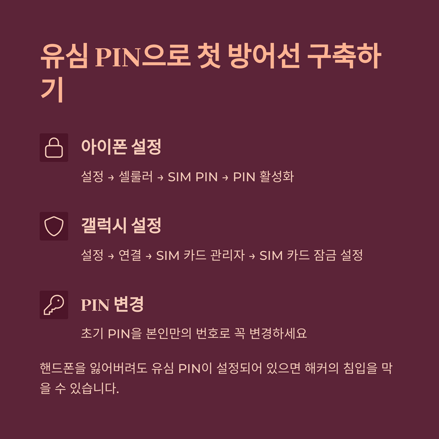 유심 PIN 코드 설정은 가장 기본이면서 강력한 보안 수단입니다.